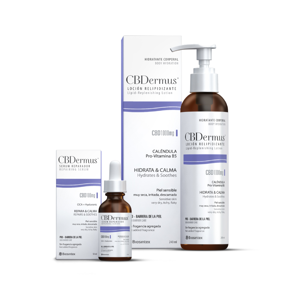 Cuidado diario de la PIEL SENSIBLE, propensa a brotes de sequedad, descamación y picor. Puro CBD 100% natural: calmante, antioxidante, hidratante y protector de la función barrera de la piel.
